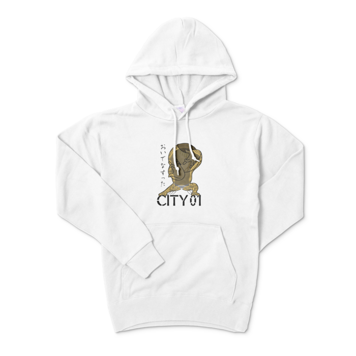 キモンくんが印を結び、いわゆるダブルエンガッチョを顔に這わせたパーカーです。